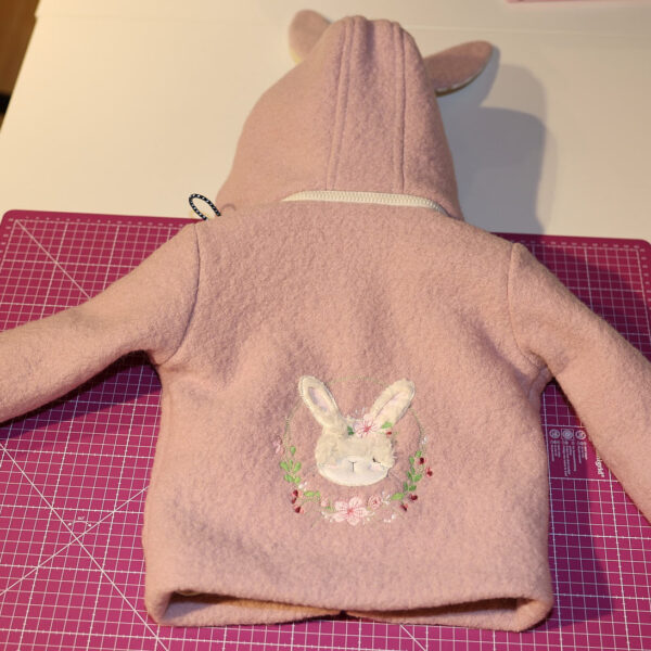 mit Stick Applikation auf dem Rücken.