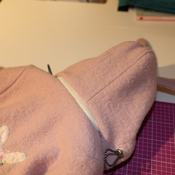 Mit Reissverschluss abnehmbare Kapuze mit Hasenohren, Kordel reflektierend